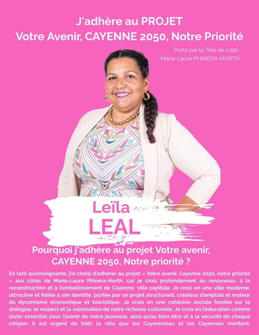 En adhérant à ce projet ambitieux, Leïla Leal affirme son engagement pour une Cayenne tournée vers l’avenir, fidèle à son identité et résolument tournée vers le progrès.